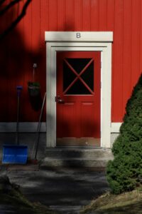 ytterdør i tre med vindu